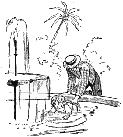 The gardener fished her out of the fountain twice in the week she was there. She was reaching for the goldfish with her fat little hands, and toppled in, head first. Phil began the week by getting a bee-sting on his lip, and a bite on the cheek from a parrot that he was teasing. As for Stuart, I think he had climbed every tree on the place before the first day was over, and torn his best clothes nearly off his back. The gardener had a sorry time of it while they stayed. He complained that "a herd of wild buffalo turned loose to rend and destroy" would not have done as much damage to his fruit and flowers as they. "Not as they means[Pg 9] to do it, I don't think," he said. "But they're so chock-full of go that they fair runs away with their selves." The gardener's excitement did not long last, however.