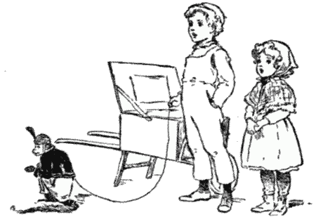 "Put on the oldest, raggedest clothes you can find," he said to her, "and tie an old handkerchief over your head so't you'll look as beggary as possible. I'll tear some more holes in the old overalls that I played in last summer, and pull part of the brim off my straw hat. We'll take the music-box out of the hall, and put it in my little red wheelbarrow, and you[Pg 69] and me and Dago will start off through the streets like the grind-organ man did yesterday, I planned it all last night while everybody in the house was sound asleep. We'll sing when the music-box plays songs, and you and Dago can dance when it plays waltzes. I'll give you part of the money that we get to buy you the prettiest doll in town. I'll take the rest and go off to the place that I'm thinking about."
