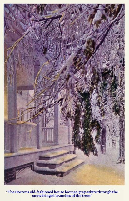 He could have told you with a reflective stroke of his grizzled beard that the snow had stopped but an hour since, and that now through the white and heavy lacery of branches to the west glowed the[Pg 9] flame-gold of a winter sunset, glinting ruddily over the box-bordered brick walk, the orchard and the comfortable barn which snugly housed his huddled cattle; that the grasslands to the south were thickly blanketed in white; that beyond in the evergreen forest the stately pines and cedars were marvelously draped and coiffed in snow. For the old Doctor loved these things of Nature as he loved the peace and quiet of his home.