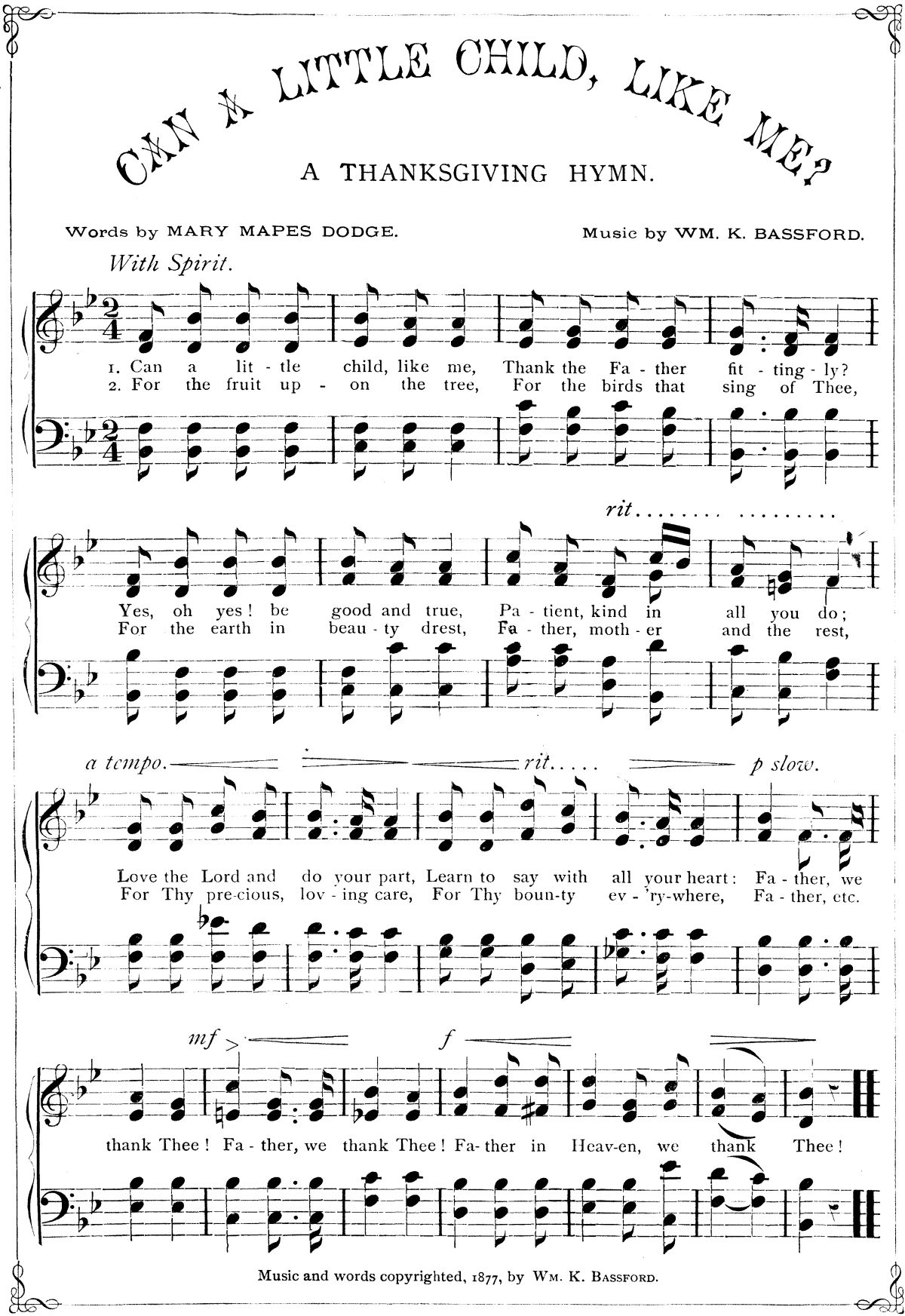 | Can a Little Child Like Me? (Thanksgiving Hymn) | Mary Mapes Dodge | 68 |