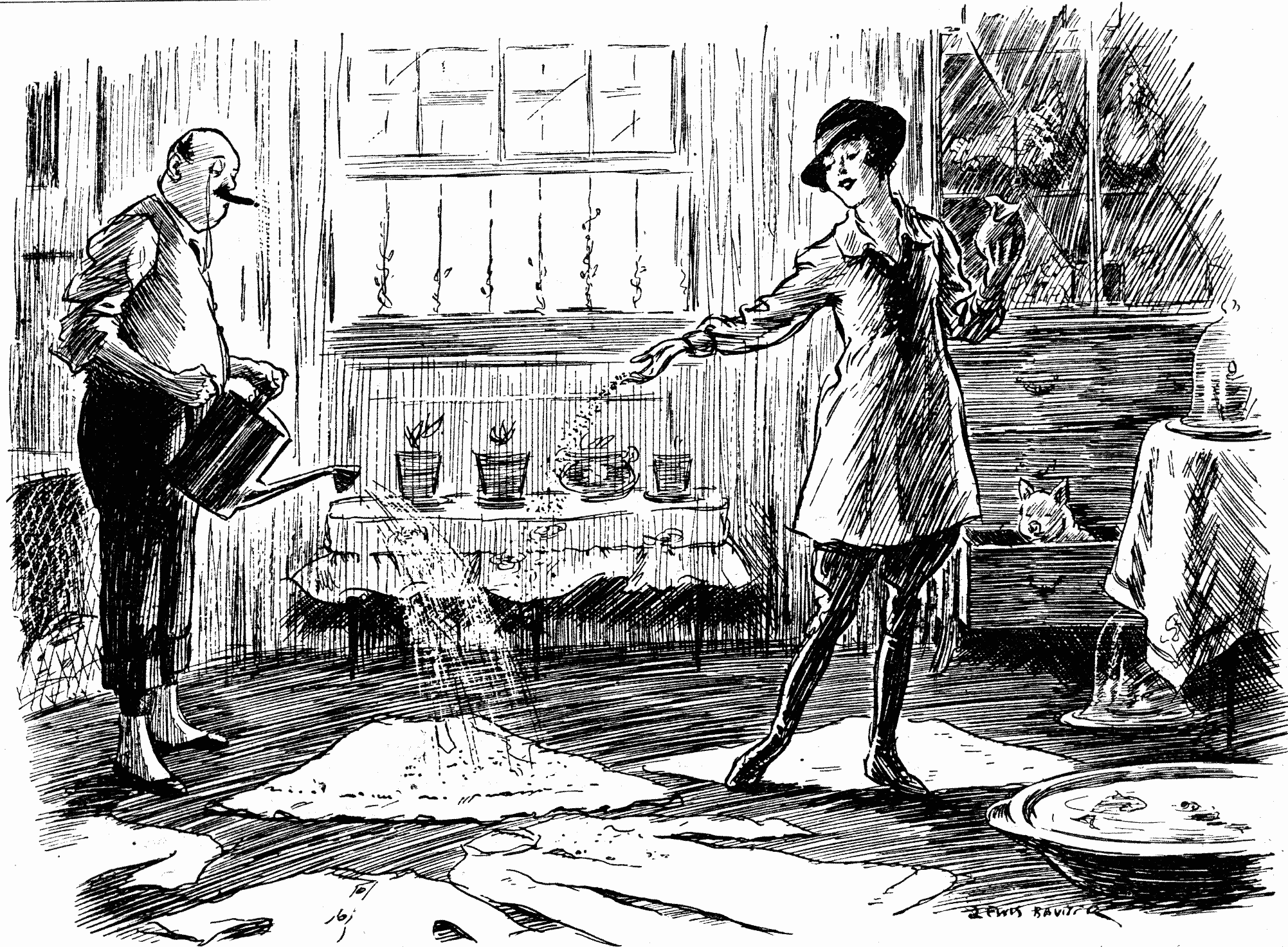 "I'm afraid it does. But when once the War's over it won't be long before you'll be able to keep me in the style to which I'm accustomed, will it?"