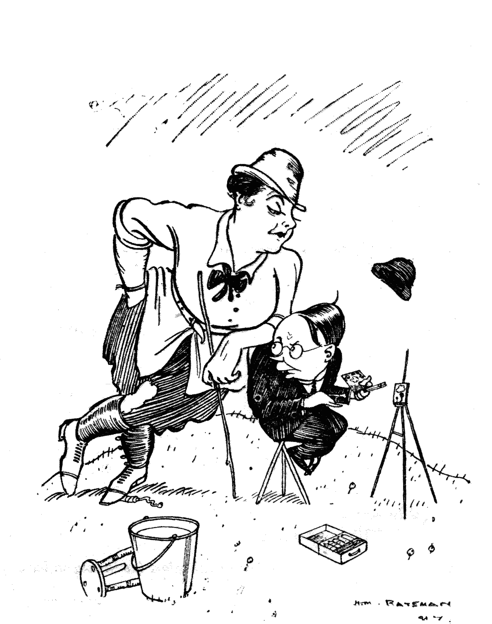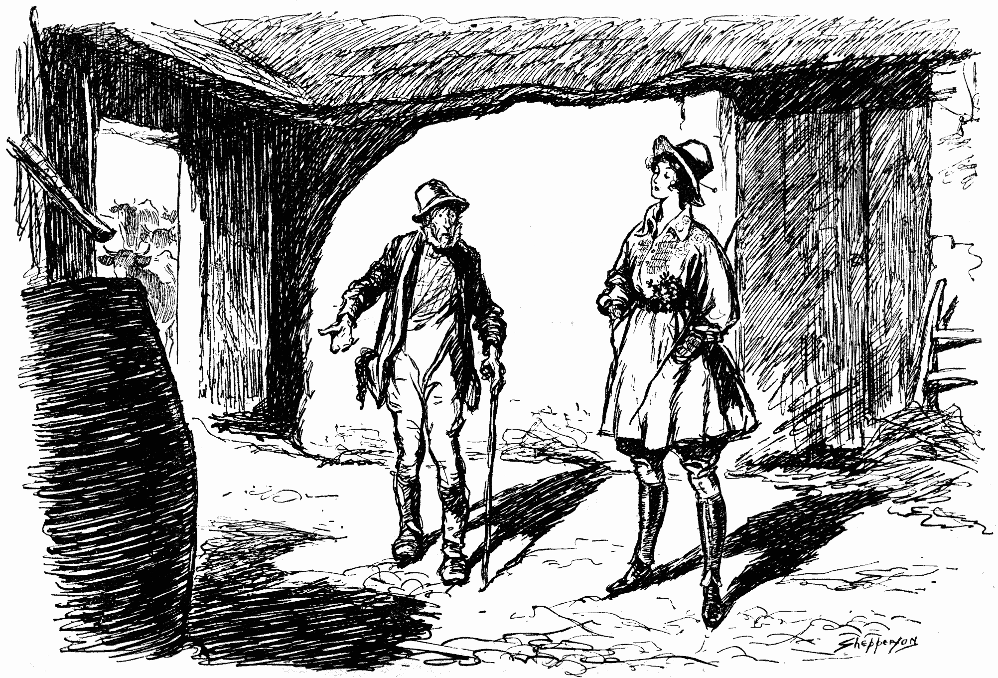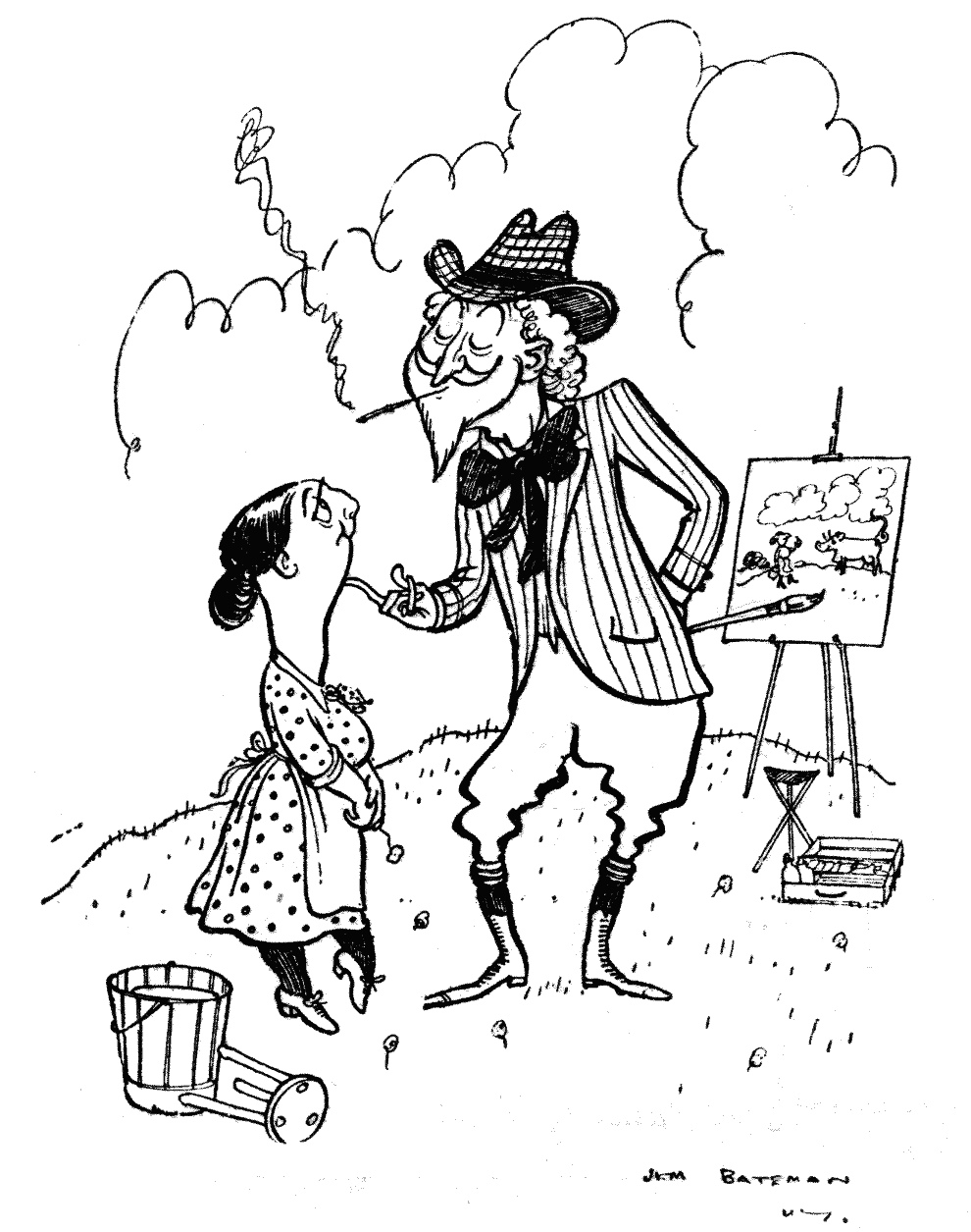 Cowman (to new recruit, Women's Land Army). "You get behind that there water-butt. Mebbe cows won't come in if they see you in that there rig."