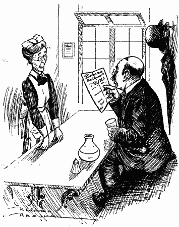 "Dear Sir,—May I ask you to take into consideration the fact that by having ceased to shave you will in future be effecting a slight economy in your daily expenditure? Might I also suggest to you that during the remainder of the War you should make a voluntary contribution to the national exchequer of every shilling saved under this head? The total sum will not be large, but everything counts. Yours is, if I may be allowed to say so, the finest beard I have been instrumental in producing during my two and a half years' experience in domestic service. I am now hard at work on my sixth case, which is approaching its crisis.