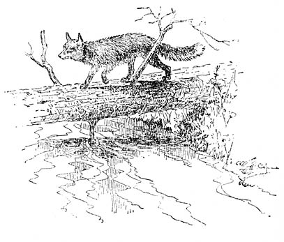Laten we de honden nu eens vóor zijn en Reintje bij het vossenpad opwachten. Daar is ’t gejaagde dier. Hij komt er aangesprongen, zoo licht als een veertje op den wind, met zijn staart als een groote, wuivende veer achter zich aan, staat stil om naar het plompe gedraaf van zijn vervolgers te luisteren, maakt een paar bokkesprongen, zelfvoldaan als hij is, jaagt—wanneer het een jonge vos is—zijn staart achterna, loopt kris en kras zijn spoor door elkaar, draaft naar de beek en springt van den eenen steen op den anderen; kiest daarna voorzichtig zijn weg over droge plekken, die den reuk niet vasthouden, naar den top van den heuvel, waar hij het gevaar prachtig kan overzien, en rolt zich op een warme rots ineen voor een dutje. Zoodra het geblaf hem te dichtbij komt glipt hij aan den anderen kant de helling af, waar het is alsof de wind hem naar den volgenden heuvel blaast. Ook hier bestaan er uitzonderingen; maar zij bevestigen slechts dien grooten regel van het dierenleven: vroolijkheid overal, zelfs dan wanneer wij een wilden doodsangst zouden verwachten. Onder alle vossen [98]die ik met woest jachtgeweld achter zich aan mijn blikken zag voorbijgaan, heb ik er slechts éen ontdekt, die niet den indruk gaf alsof hij veel meer pret had dan de honden die op hem joegen. Dat is de reden waarom hij zoo zelden in zijn hol vlucht, dat hem zoo eenvoudig en gemakkelijk tegen alles zou vrijwaren, als hij maar wilde. Is het mooi weer, dan blijft hij den geheelen dag op de been, maar als het loopen hem zwaar valt of zijn staart nat wordt in de brijige sneeuw, draaft hij een poosje om zijn spieren los te maken, en glipt dan in zijn hol, waar hij rustig gaat liggen. De honden mogen blaffen wat ze willen: de grond is bevroren en zij kunnen hem niet uitgraven.