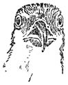 Al gauw vernauwden die onregelmatige kringen zich om een middelpunt, waar de groote adelaar omheen vloog alsof ’t een spil was. De wilde kreet zweeg nu en hij hield zijn wieken breed en stijf uitgeslagen, zooals een adelaar dat doet die op de lucht drijft. Minuten lang kon ik geen beweging bespeuren; hij was net een donker lijntje, op dien oneindigen blauwen achtergrond getrokken. Het begon langer te worden, langer; verbreedde zich—en toen wist ik dat het recht op mij af naar beneden kwam.