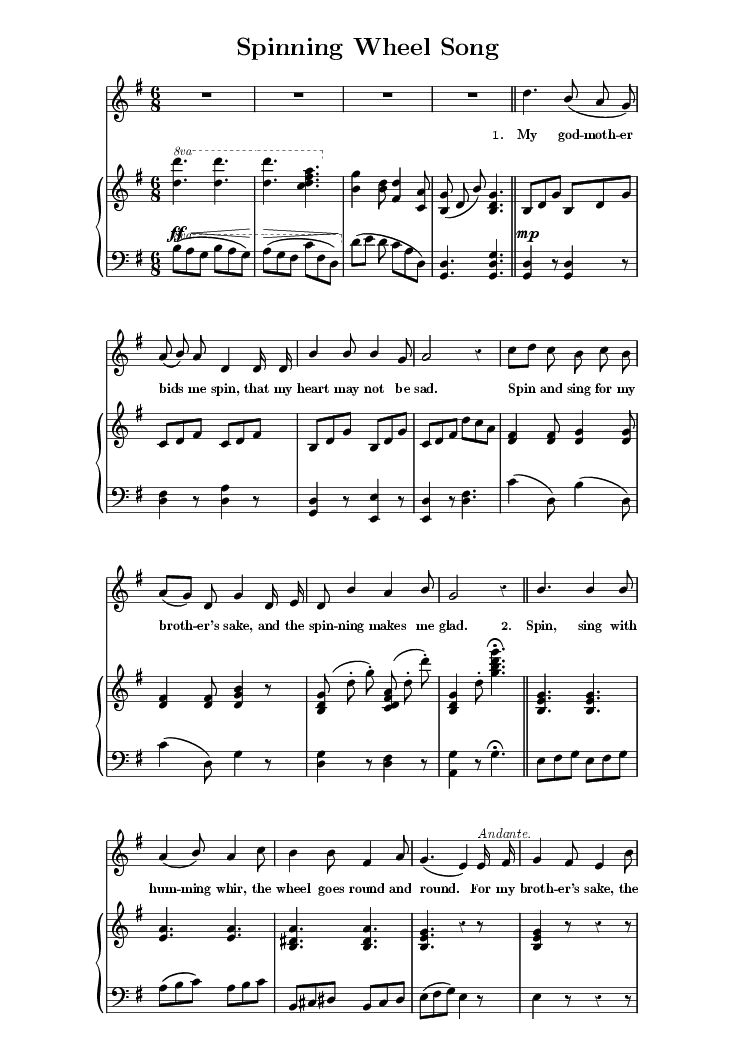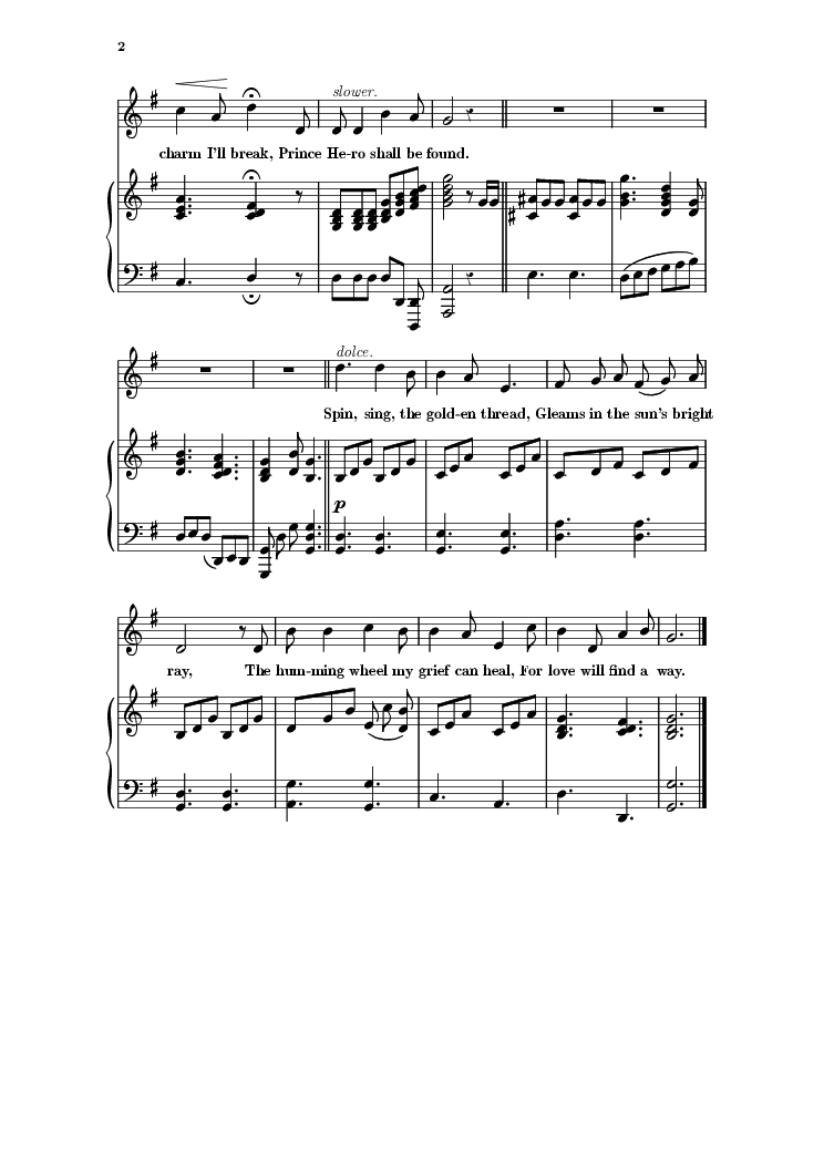 Scene I. In the Tower Room. Princess Winsome and Hero. Godmother brings spinning-wheel on which [pg 4] Princess is to spin Love's golden thread that shall rescue her brother. Dove comes with letter from Knight. Flower messengers in turn report his progress. Counting the Daisy's petals the Princess learns that her true Knight has found the flute.