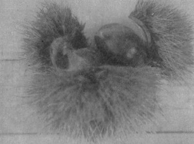 Chestnuts, beechnuts and acorns require more care when they are to be stored, for their viability is very sensitive to dryness. I have found that these soft-shelled species of nuts should be treated in a different manner than the walnut and hickory types of seeds if we are to get the most out of their germination. Since chestnuts are very prone to molding or rotting,[Pg 92] the best way to maintain their viability and freshness over winter is to stratify them in a can or box between layers of a peat moss. This peat moss must be decidedly on the acid side and must be dampened, but must not be so wet that you can wring any water out of it. The best way to prepare this dry peat moss is to soak it in water and wring as much water out of it as possible by squeezing with your hands. Then mix it with half as much of the undampened peat. This will give you approximately the right moisture coefficient. If stored in cans, the bottom of the can must be punctured with a few holes about 1/4 of an inch in diameter, well distributed on the bottom to act as a drain and to admit some slight circulation of air. The same thing should be done with the cover.
