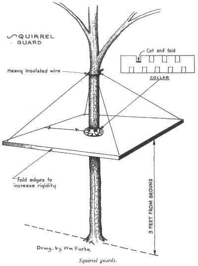 It is a wise precaution to place a protective screen around the trunk of each tree to prevent rodents from attacking it. Mice gnaw off the bark near the ground, sometimes girdling a tree and so killing it. Rabbits chew off branches and they, too, may girdle the upper part of a tree. Rabbits are very fond of pecan and hickory bark. In some places, it may be necessary to encircle each pecan and hickory tree with a three or four-foot rabbit fence until the tree is large enough to lose its appeal to these nuisances.