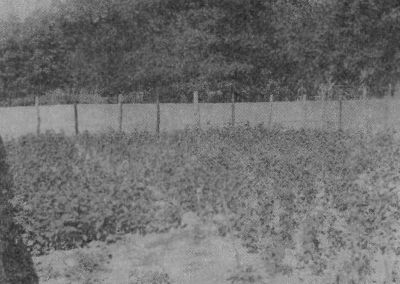 This 60 x 30 foot corrugated galvanized iron fence 3-1/2 feet tall and sunk 6 inches into ground protects valuable hybrids against invasion by rodents. Photo by C. Weschcke.