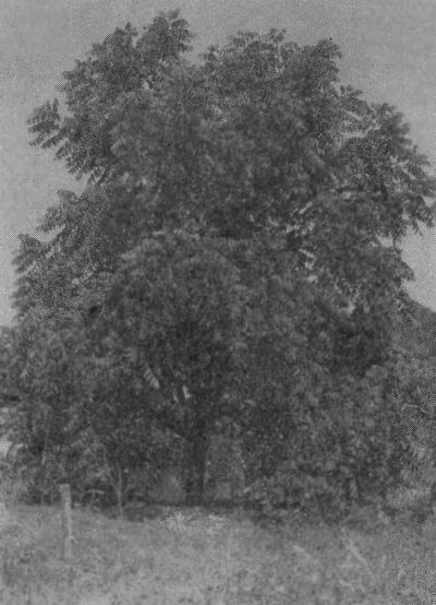 For several years I continued to graft black walnuts on butternut trees with the intention of converting hundreds, perhaps thousands, of these wild trees over to prolific, cultured black walnuts. I did not realize my mistake in doing this until ten years had elapsed. I believed that since the tops were growing, the trees would shortly produce nuts. Today they are still growing, bigger and better, yet most of these grafted trees bear no nuts, having only a crop of leaves. A few nuts result from these grafts, however, and some of the trees bear a handful of nuts from tops of such size that one would expect the crops to be measured in bushels. The kind which bore the best was the Ohio variety. In another chapter, I shall relate parallel experience in hickory grafting which I carried on simultaneously with grafting of black walnut on butternut.