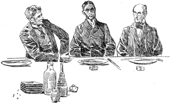 "That," returned the Idiot, "is an assertion, Mr. Whitechoker, that is both true and untrue. There are times when a physician is an ornament to a boarding-house; times when he is not. For instance, on[Pg 23] Wednesday morning if it had not been for the surgical skill of our friend here, our good landlady could never have managed properly to distribute the late autumn chicken we found upon the menu. Tally one for the affirmative. On the other hand, I must confess to considerable loss of appetite when I see the Doctor rolling his bread up into little pills, or measuring the vinegar he puts on his salad by means of a glass dropper, and taking the temperature of his coffee with his pocket thermometer. Nor do I like—and I should not have mentioned it save by way of illustrating my position in regard to Mr. Whitechoker's assertion—nor do I like the cold, eager glitter in the Doctor's eyes as he watches me consuming, with some difficulty, I admit, the cold pastry we have served up to us on Saturday mornings under the wholly transparent alias of 'Hot Bread.' I may have very bad taste, but, in my humble opinion, the man who talks shop is preferable to the one who suggests it in his eyes. Some more iced potatoes, Mary," he added, calmly.