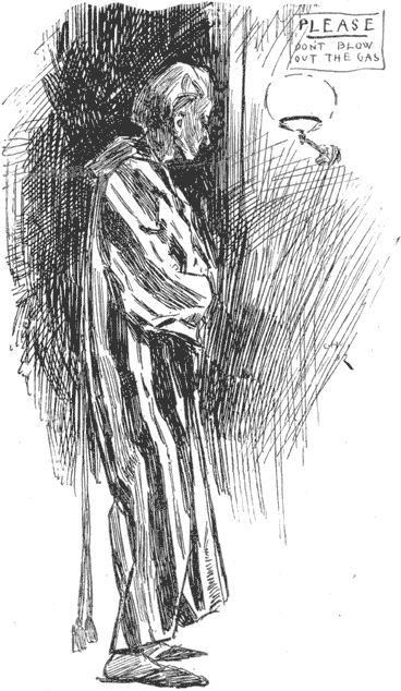 "Yes, I think you would," observed the Idiot, folding up his napkin. "You're just the man to do a thing like that. I believe you'd blow out the gas in your bedroom if there wasn't a sign over it requesting you not to." And filling his match-box from the landlady's mantel supply, the Idiot hurried from the room, and soon after left the house.[Pg 111]