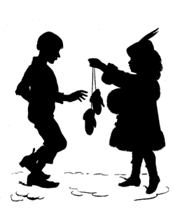 [Pg 135]But there was fun, too, about that cold weather; fun with the snow-man in the Park; fun in learning to skate on the frozen pond, shut in so nicely with the fir-trees; and fun in the real Christmas treats, Christmas-trees, and Christmas games.