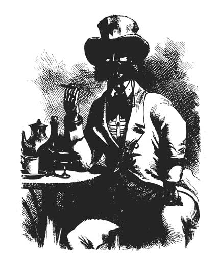 "At the back door, mum, with his coat tucked over his ears, and such a cold in his head. Shall I show him in?"
