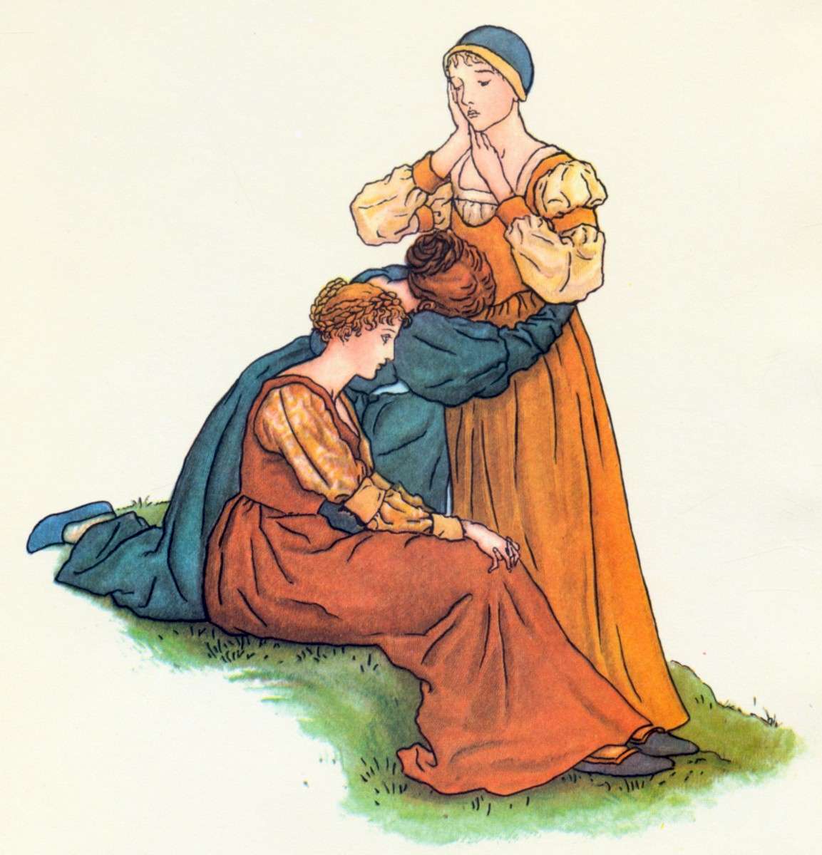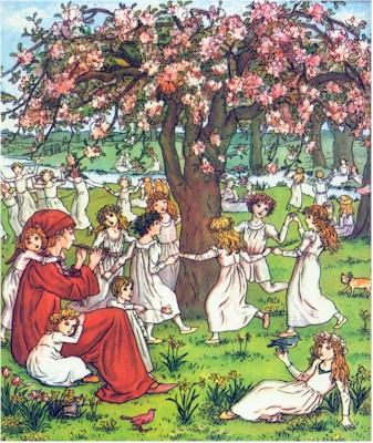 [Pg 45]Where waters gushed and fruit-trees grew, And flowers put forth a fairer hue, And everything was strange and new; The sparrows were brighter than peacocks here, And their dogs outran our fallow deer, And honey-bees had lost their stings, And horses were born with eagles' wings; And just as I became assured My lame foot would be speedily cured, The music stopped and I stood still, And found myself outside the hill, Left alone against my will, To go now limping as before, And never hear of that country more!"
