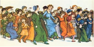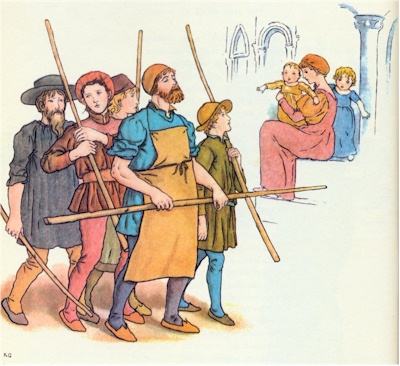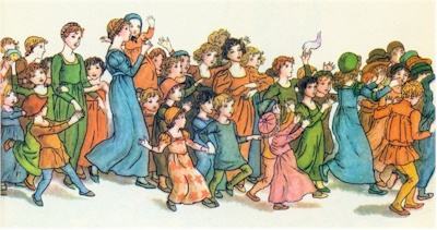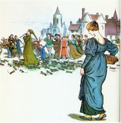 Into the street the Piper stept, Smiling first a little smile, As if he knew what magic slept In his quiet pipe the while; Then, like a musical adept, To blow the pipe his lips he wrinkled, And green and blue his sharp eyes twinkled, Like a candle-flame where salt is sprinkled; And ere three shrill notes the pipe uttered, You heard as if an army muttered;