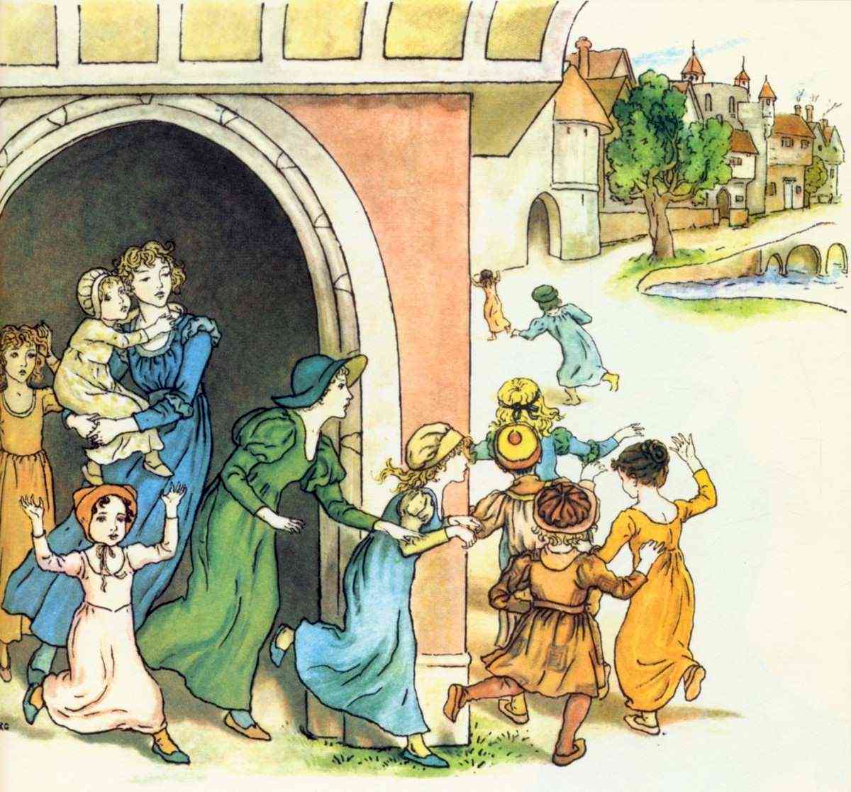 Alas, alas for Hamelin! There came into many a burgher's pate A text which says that Heaven's gate Opes to the rich at as easy rate As the needle's eye takes a camel in! The Mayor sent East, West, North, and South, To offer the Piper, by word of mouth, Wherever it was men's lot to find him, Silver and gold to his heart's content, If he'd only return the way he went, And bring the children behind him. But when they saw 'twas a lost endeavour, And Piper and dancers were gone for ever, They made a decree that lawyers never [Pg 46]Should think their records dated duly If, after the day of the month and year, These words did not as well appear, "And so long after what happened here On the Twenty-second of July, Thirteen hundred and seventy-six:" And the better in memory to fix The place of the children's last retreat, They called it, the Pied Piper's Street— Where any one playing on pipe or tabor, Was sure for the future to lose his labour. Nor suffered they hostelry or tavern To shock with mirth a street so solemn; But opposite the place of the cavern They wrote the story on a column, And on the great church-window painted The same, to make the world acquainted How their children were stolen away, And there it stands to this very day. And I must not omit to say That in Transylvania there's a tribe Of alien people that ascribe The outlandish ways and dress On which their neighbours lay such stress, To their fathers and mothers having risen Out of some subterraneous prison Into which they were trepanned Long time ago in a mighty band Out of Hamelin town in Brunswick land, But how or why, they don't understand.