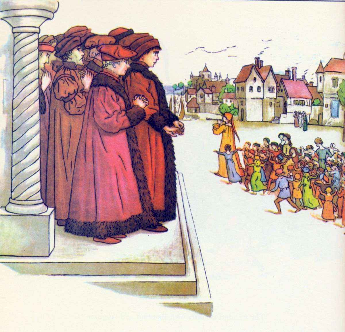 Consult with carpenters and builders, And leave in our town not even a trace Of the rats!"—when suddenly up the face Of the Piper perked in the market-place, With a, "First, if you please, my thousand guilders!"