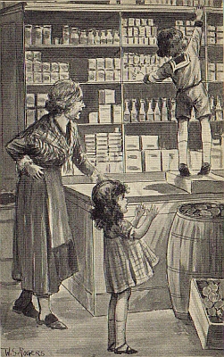"That will be nice," said Mother Brown. "Tell Mary to let you have some things with which to play store. You may play in the kitchen, as Mary is working upstairs now."