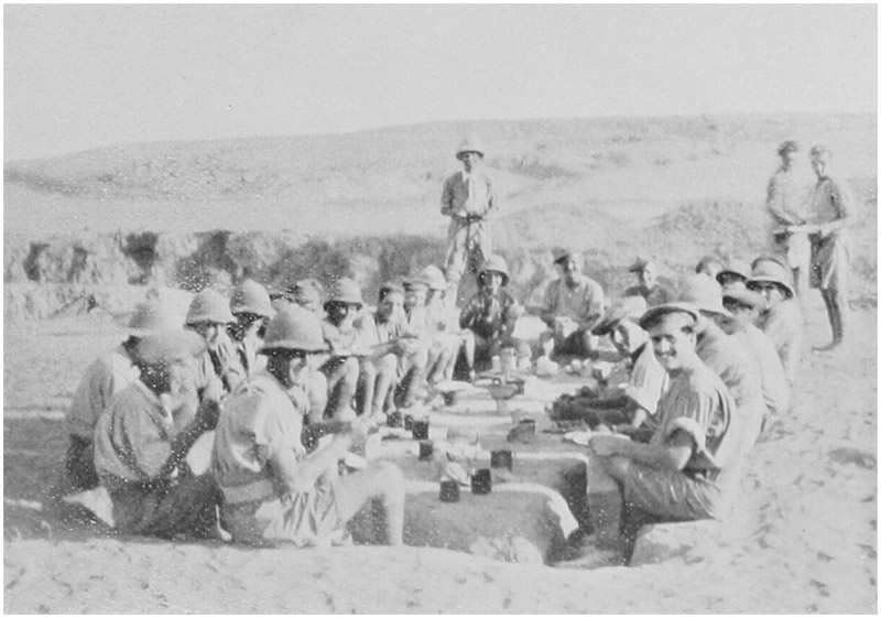 [13]We reached Alexandria on the morning of the 18th, and the first stage of our trip was over—to everyone’s regret. We had had a lovely voyage, a calm sea and perfect weather, and only the most persevering had managed to get seasick. Those of us who had still lingering hopes of seeing horses at Alexandria were speedily disillusioned, as we were ordered promptly to unload all our saddlery and transport vehicles. This was done with just as much organisation and care as the loading. The following morning we all went a route march for a couple of hours through the town. Perhaps the intention was to squash any desire we might have had to linger on in Alexandria. All the same some bits undoubtedly stank less than others.