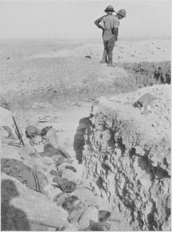 We had hoped the relief would have been cancelled, but not so, and at 5 P.M. we started off for the front line. The Turks evidently anticipated something of the sort, and their rifle fire soon forced us to take to the communication trenches. North Lane was not too bad. There was 18 inches of water, but the bottom was gravelly and the going not too bad. Where this trench struck the old support line we found guides awaiting us who took us [24]past Willow Tree Well through the most awful trenches-too narrow for a heavily ladened man, greasy and slippery, and full of holes which took us up to the waist in water. Some idea of the going may be gathered from the fact that the journey of less than two miles took upwards of five hours to accomplish. And then our troubles weren’t over. The firebays we found crammed with the infantry we were relieving—a helpless, hopeless mob—and it wasn’t till midnight that we had the place to ourselves.