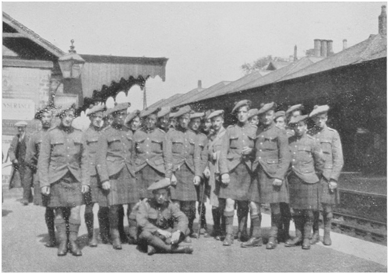 The Regiment was fortunate in having about a week at Squadron Mobilization Centres before uniting at Blairgowrie, and a pretty hectic week it was for most of us. The most rapid bit of work must have been that of D Squadron, whose men were distributed amongst the other squadrons, fully equipped, in about three days. This squadron was also called upon to provide the various details, such as mounted police, who were required on mobilization to report to the Highland Territorial Infantry Division, the famous 51st.