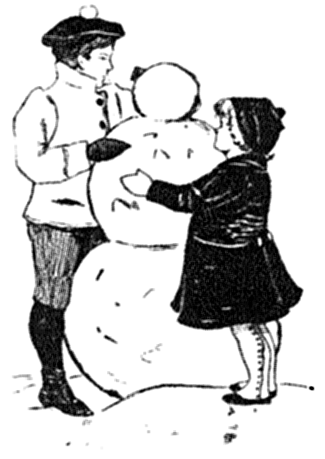 [54]Along in the afternoon the winter sunshine tempted the children out of doors, and they commenced to build a snow man. They tugged away at the huge image, with red cheeks and sparkling eyes, so full of out-breaking fun that the passers-by stopped to smile at the sight.