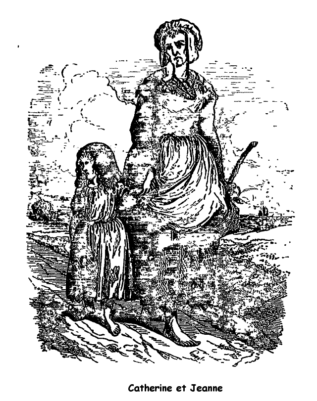 Après s'être reposée tout le reste de la journée, Catherine se coucha de bonne heure. Le lendemain elle éveilla Jeanne de bon matin; elle l'habilla et lui lava les mains et le visage; puis, après lui avoir fait faire sa prière, elle lui dit: