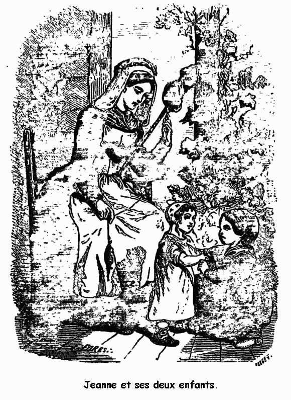 La petite Jeanne pleura un peu; mais, quand elle eut considéré la bonne figure de la mère Nannette, elle dit qu'elle voulait bien rester; Catherine partit, et Jeanne, s'approchant tout doucement de la mère Nannette, lui dit: