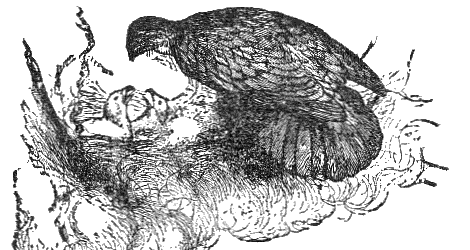 The Eagle and the Beetle were at enmity together, and they destroyed one another's nests. The Eagle gave the first provocation in seizing upon and in eating the young ones of the Beetle. The Beetle got by stealth at the Eagle's eggs, and rolled them out of the nest, and followed the Eagle even into the presence of Jupiter. On the Eagle making his complaint, Jupiter ordered him to make his nest in his lap; and while Jupiter had the eggs in his lap, the Beetle came flying about him, and Jupiter, rising up unawares to drive him away from his head, threw down the eggs, and broke them.