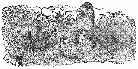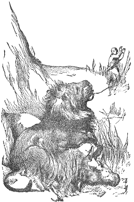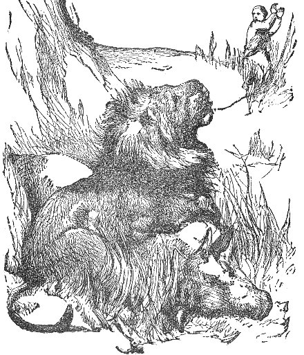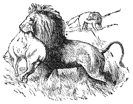 A Gnat came and said to a Lion: "I do not the least fear you, nor are you stronger than I am. For in what does your strength consist? You can scratch with your claws, and bite with your teeth—so can a woman in her quarrels. I repeat that I am altogether more powerful than you; and if you doubt it, let us fight and see who will conquer." The Gnat, having sounded his horn, fastened itself upon the Lion, and stung him on the nostrils. The Lion, trying to crush him, tore himself with his claws, until he punished himself severely. The Gnat thus prevailed over the Lion, and buzzing about in a song of triumph, flew away. But shortly afterwards he became entangled in the meshes of a cobweb, and was eaten by a spider. He greatly lamented his fate, saying: "Woe is me, that I, who can wage war successfully with the hugest beasts, should perish myself from this spider."