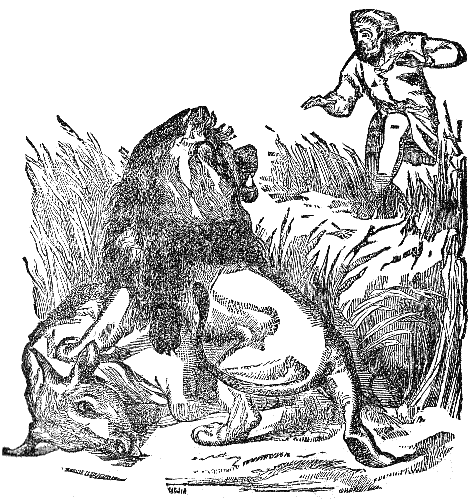 A Lion and an Ass made an agreement to go out hunting together. By-and-by they came to a cave, where wild goats abode. The Lion took up his station at the mouth of the cave, and the Ass, going within, kicked and brayed, and made a mighty fuss to frighten them out. When the Lion had caught them, the Ass came out and asked him if he had not made a noble fight. "Yes, indeed," said the Lion; "and I assure you, you would have frightened me too, if I had not known you to be an Ass."