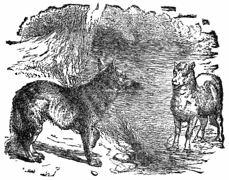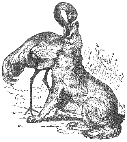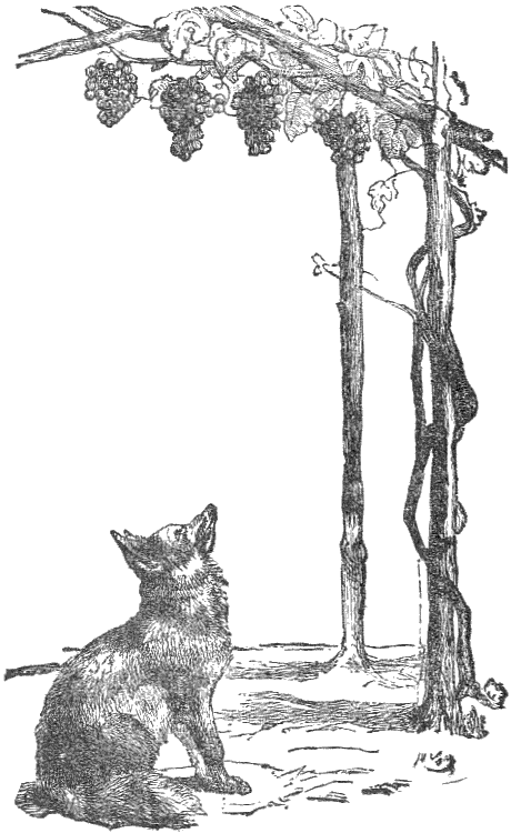 A Dog and a Cock, traveling together, took shelter at night in a thick wood. The Cock perched himself on a high branch, while the Dog found a bed at the foot of the tree. When morning dawned, the Cock, as usual, crowed very loudly. A Fox, hearing the sound, and wishing to make a breakfast on him, came and stood under the branches, saying how earnestly he desired to make the acquaintance of the owner of so sweet a voice.