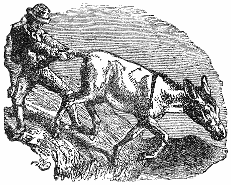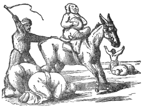 A certain Huckster who kept an Ass, hearing that Salt was to be had cheap at the sea-side, drove down his Ass thither to buy some. Having loaded the beast as much as he could bear, he was driving him home, when, as they were passing a slippery ledge of rock, the Ass fell into the stream below, and the Salt being melted, the Ass was relieved of his burden, and having gained the bank with ease, pursued his journey onward, light in body and in spirit. The Huckster soon afterwards set off for the sea-shore for some more Salt, and loaded the Ass, if possible, yet more heavily than before. On their return, as they crossed the stream into which he had formerly fallen, the Ass fell down on purpose, and by the dissolving of the Salt, was again released from his load. The Master, provoked at the loss, and thinking how he might cure him of this trick, on his next journey to the coast freighted the beast with a load of sponges. When they arrived at the same stream as before, the Ass was at his old tricks again, and rolled himself into the water; but he found to his cost, as he proceeded homewards, that instead of lightening his burden, he had more than doubled its weight.
