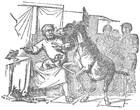 The Life and History of Æsop is involved, like that of Homer, the most famous of Greek poets, in much obscurity. Sardis, the capital of Lydia; Samos, a Greek island; Mesembria, an ancient colony in Thrace; and Cotiæum, the chief city of a province of Phrygia, contend for the distinction of being the birthplace of Æsop. Although the honor thus claimed cannot be definitely assigned to any one of these places, yet there are a few incidents now generally accepted by scholars as established facts, relating to the birth, life, and death of Æsop. He is, by an almost universal consent, allowed to have been born about the year 620 B.C., and to have been by birth a slave. He was owned by two masters in succession, both inhabitants of Samos, Xanthus and Jadmon, the latter of whom gave him his liberty as a reward for his learning and wit. One of the privileges of a freedman in the ancient republics of Greece was the permission to take an active interest in public affairs; and Æsop, like the philosophers Phædo, Menippus, and Epictetus, in later times, raised himself from the indignity of a servile condition to a position of high renown. In his desire alike to instruct and to be instructed, he travelled through many countries, and among others came to Sardis, the capital of the famous king of Lydia, the great patron in that day, of learning and of learned men. He met at the court of Crœsus with Solon, Thales, and other sages, and is related so to have pleased his royal master, by the part he took in the conversations held with these philosophers, that he applied to him an expression which has since passed into a proverb, "μᾶλλον ὁ Φρύξ"—"The Phrygian has spoken better than all."