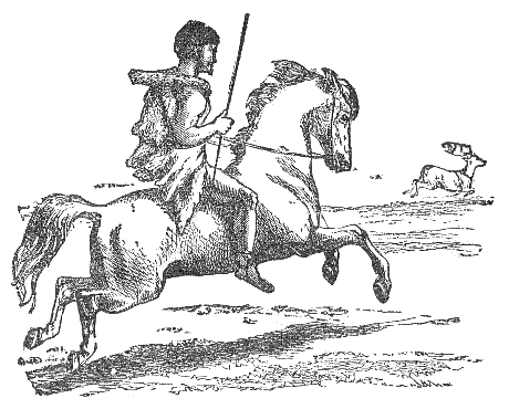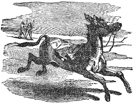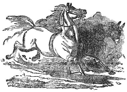 The Horse had the plain entirely to himself. A Stag intruded into his domain and shared his pasture. The Horse, desiring to revenge himself on the stranger, requested a man, if he were willing, to help him in punishing the Stag. The man replied, that if the Horse would receive a bit in his mouth, and agree to carry him, he would contrive very effectual weapons against the Stag. The Horse consented, and allowed the man to mount him. From that hour he found that, instead of obtaining revenge on the Stag, he had enslaved himself to the service of man.