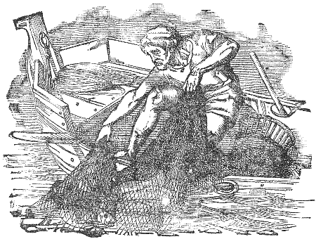 A Sailor, bound on a long voyage, took with him a Monkey to amuse him while on shipboard. As he sailed off the coast of Greece, a violent tempest arose, in which the ship was wrecked, and he, his Monkey and all the crew were obliged to swim for their lives. A Dolphin saw the Monkey contending with the waves, and supposing him to be a man (whom he is always said to befriend), came and placed himself under him, to convey him on his back in safety to the shore. When the Dolphin arrived with his burden in sight of land not far from Athens, he demanded of the Monkey if he were an Athenian, who answered that he was, and that he was descended from one of the noblest families in that city.