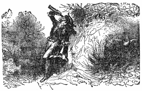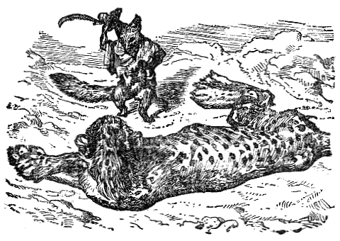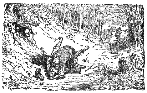 A skillful archer, coming into the woods, directed his arrows so successfully that he slew many wild beasts, and pursued several others. This put the whole savage kind into a fearful consternation, and made them fly to the most retired thickets for refuge. At last, the Tiger resumed courage, and, bidding them not be afraid, said that he alone would engage the enemy; telling them they might depend upon his valor and strength to revenge their wrongs. In the midst of these threats, while he was lashing himself with his tail, and tearing up the ground for anger, an arrow pierced his ribs, and hung by its barbed point in his side. He set up an hideous and loud roar, occasioned by the anguish which he felt, and endeavored to draw out the painful dart with his teeth; when the Fox, approaching him, inquired with an air of surprise who it was that could have strength and courage enough to wound so mighty and valorous a beast! "Ah!" says the Tiger, "I was mistaken in my reckoning: it was that invincible man yonder."