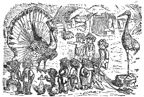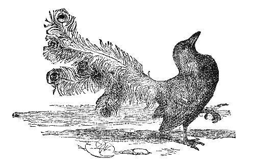 A Peacock, spreading its gorgeous tail, mocked a Crane that passed by, ridiculing the ashen hue of its plumage, and saying: "I am robed like a king, in gold and purple, and all the colors of the rainbow; while you have not a bit of color on your wings." "True," replied the Crane, "but I soar to the heights of heaven, and lift up my voice to the stars, while you walk below, like a cock, among the birds of the dunghill."