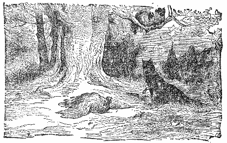 An Eagle had made her nest at the top of a lofty oak. A Cat, having found a convenient hole, lived with her kittens in the middle of the trunk; and a Wild Sow with her young had taken shelter in a hollow at its foot. The Cat resolved to destroy by her arts this chance-made colony. She climbed to the nest of the Eagle, and said: "Destruction is preparing for you, and for me too. The Wild Sow, whom you may see daily digging up the earth, wishes to uproot the oak, that she may, on its fall, seize our families as food." Then she crept down to the cave of the Sow and said: "Your children are in great danger; for as soon as you shall go out with your litter to find food, the Eagle is prepared to pounce upon one of your little pigs." When night came, she went forth with silent foot and obtained food for herself and her kittens; but, feigning to be afraid, she kept a look-out all through the day. Meanwhile, the Eagle, full of fear of the Sow, sat still on the branches, and the Sow, terrified by the Eagle, did not dare to go out from her cave; and thus they each, with their families, perished from hunger.