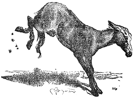 A Wolf saw a Horse grazing in a field. Putting on a grave air, he approached him and said: "Sir, you must be very ill; I have some skill as a physician, and if you will tell me where your ailment is, I shall be glad to be of service." Said the horse: "If you will examine my foot, you will find what ails me." But as the wily Wolf approached him, with a kick he sent him flying into the air.