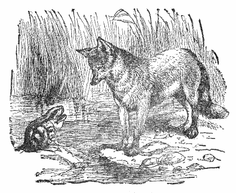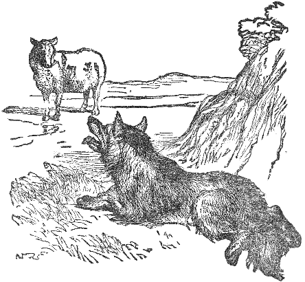 A famished Wolf was prowling about in the morning in search of food. As he passed the door of a cottage built in the forest, he heard a mother say to her child: "Be quiet, or I will throw you out of the window, and the Wolf shall eat you." The Wolf sat all day waiting at the door. In the evening he heard the same woman fondling her child, and saying: "He is quiet now, and if the Wolf should come, we will kill him." The Wolf, hearing these words, went home, gaping with cold and hunger.