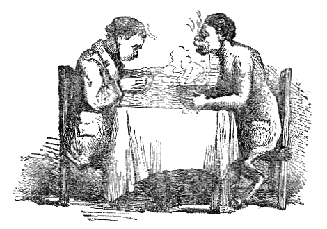 A Man and a Satyr once formed a bond of alliance. One very cold wintry day, as they talked together, the Man put his fingers to his mouth and blew on them. On the Satyr inquiring the reason, he told him that he did it to warm his hands. Later on in the day they sat down to eat, the food prepared being quite scalding. The Man raised one of his dishes towards his mouth and blew in it. On the Satyr again inquiring the reason, he said that he did it to cool the meat. "I can no longer consider you as a friend," said the Satyr; "a fellow who with the same breath blows hot and cold I could never trust."