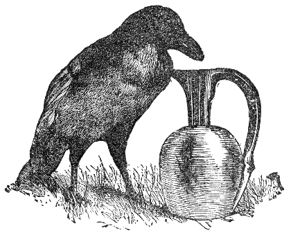 A Raven saw a Swan, and desired to secure for himself a like beauty of plumage. Supposing that his splendid white color arose from his washing in the water in which he swam, the Raven left the altars in the neighborhood of which he picked up his living, and took up his abode in the lakes and pools. But cleansing his feathers as often as he would, he could not change their color, while through want of food he perished.