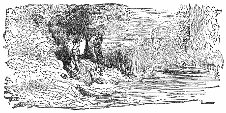 Presently they came to a group of old men in earnest debate. "There!" said one of them, "it proves what I was saying. What respect is shown to old age in these days? Do you see that idle young rogue riding, while his old father has to walk?—Get down, you scapegrace! and let the old Man rest his weary limbs." Upon this the Father made his Son dismount, and got up himself. In this manner they had not proceeded far when they met a company of women and children. "Why, you lazy old fellow!" cried several tongues at once, "how can you ride upon the beast, while that poor little lad there can hardly keep pace by the side of you." The good-natured Miller immediately took up his Son behind him. They had now almost reached the town. "Pray, honest friend," said a townsman, "is that Ass your own?" "Yes," says the old Man. "Oh! One would not have thought so by the way you load him. Why, you two fellows are better able to carry the poor beast than he you!" "Anything to please you," said the old Man. So, alighting with his Son, they tied the Ass's legs together, and by the help of a pole endeavored to carry him on their shoulders over a bridge. The people ran out in crowds to laugh at the sight; till the Ass, not liking the noise nor his situation, kicked asunder the cords and, tumbling off the pole, fell into the river. Upon this the old Man made the best of his way home with his Son—convinced that, by endeavoring to please every-body, he had succeeded in pleasing nobody, and lost his Ass into the bargain.