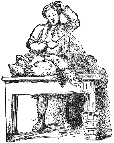A certain man had the good fortune to possess a Goose that laid him a Golden Egg every day. But dissatisfied with so slow an income, and thinking to seize the whole treasure at once, he killed the Goose, and cutting her open, found her—just what any other goose would be!