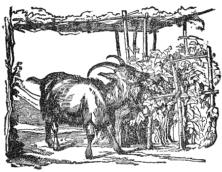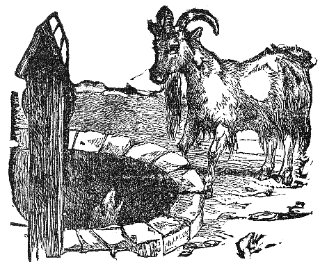 As an old Goat was going forth to pasture, she carefully latched her door, and bid her kid not to open it to any one who could not give this pass-word: "Beware of the Wolf and all his race." A Wolf happened to be passing, and overheard what the old Goat said. When she was gone, he went to the door, and, knocking, said: "Beware of the Wolf and all his race." But the Kid, peeping through a crack, said: "Show me a white paw and I will open the door." As the Wolf could not do this, he had to depart, no better than he came.