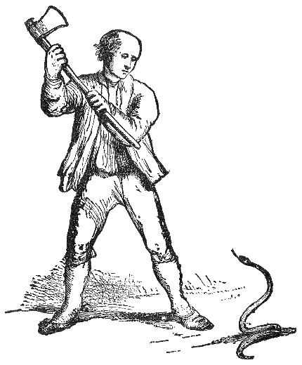 A Villager found a Snake under a hedge, almost dead with cold. He could not help having a compassion for the poor creature, so he brought it home, and laid it upon the hearth near the fire; but it had not lain there long, before (being revived with the heat) it began to erect itself, and fly at his wife and children. The Countryman, hearing an outcry, and perceiving what the matter was, caught up a mattock, and soon dispatched him, upbraiding him at the same time in these words: "Is this, vile wretch, the reward you make to him that saved your life?"