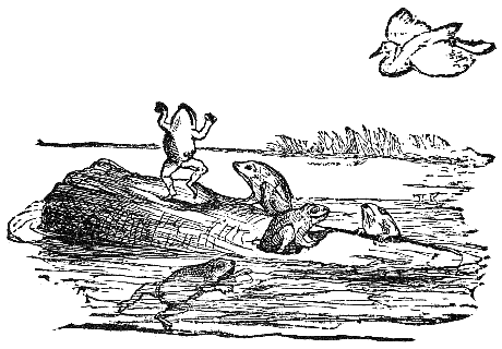 The Hares, oppressed with a sense of their own exceeding timidity, and weary of the perpetual alarm to which they were exposed, with one accord determined to put an end to themselves and their troubles, by jumping from a lofty precipice into a deep lake below. As they scampered off in a very numerous body to carry out their resolve, the Frogs lying on the banks of the lake heard the noise of their feet, and rushed helter-skelter to the deep water for safety. On seeing the rapid disappearance of the Frogs, one of the Hares cried out to his companions: "Stay, my friends, do not do as you intended; for you now see that other creatures who yet live are more timorous than ourselves."