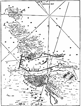 2. The construction of a sea wall from Punta de la Caleta to La Gallega. This part of the work will be begun after the completion of the first wall to a height of at least 3 ft. above low water.
